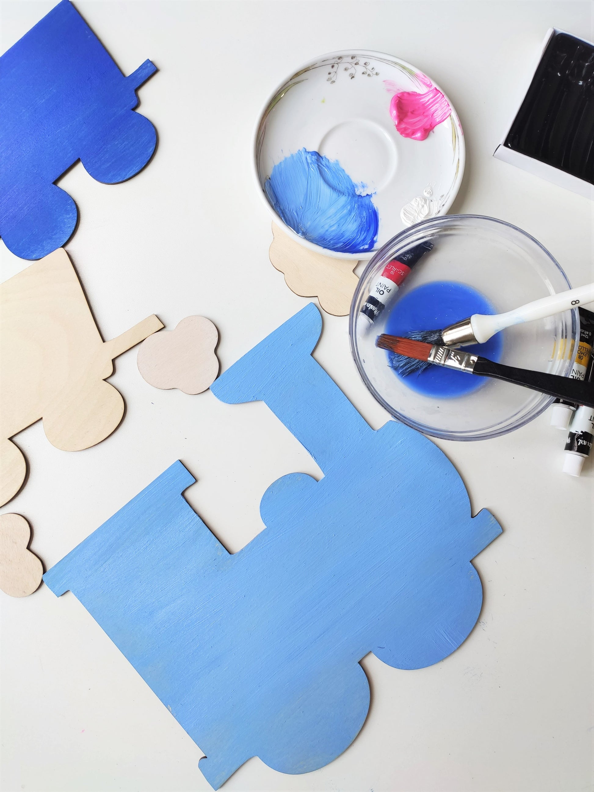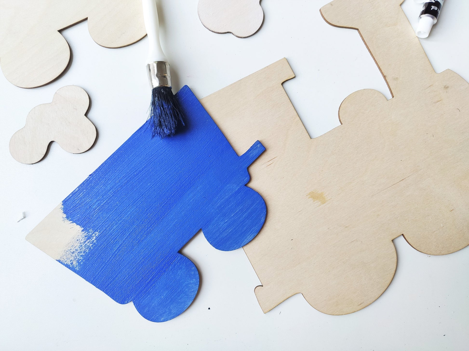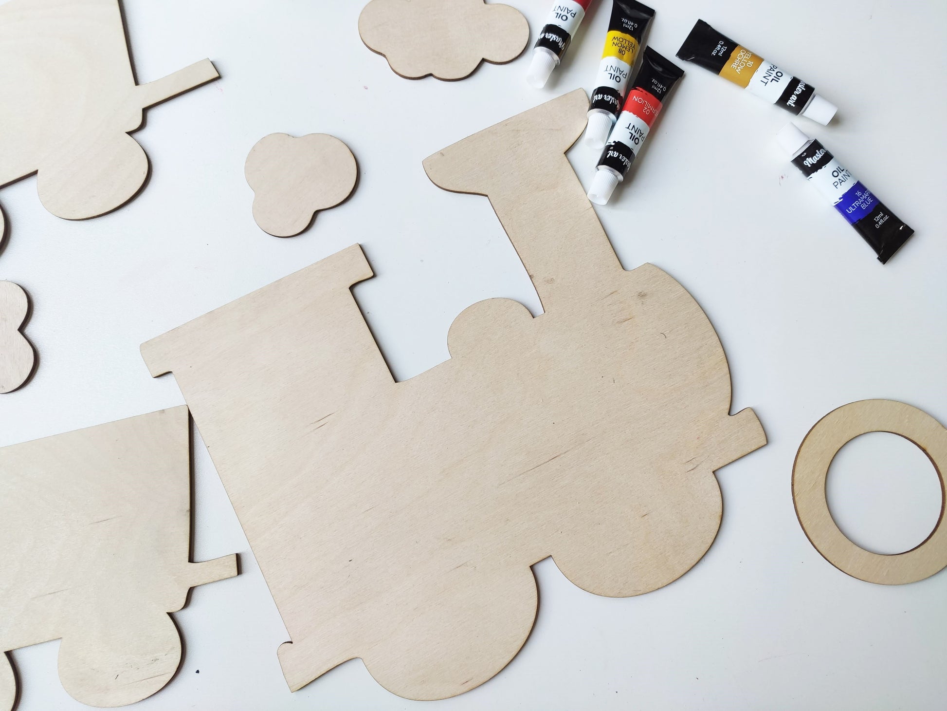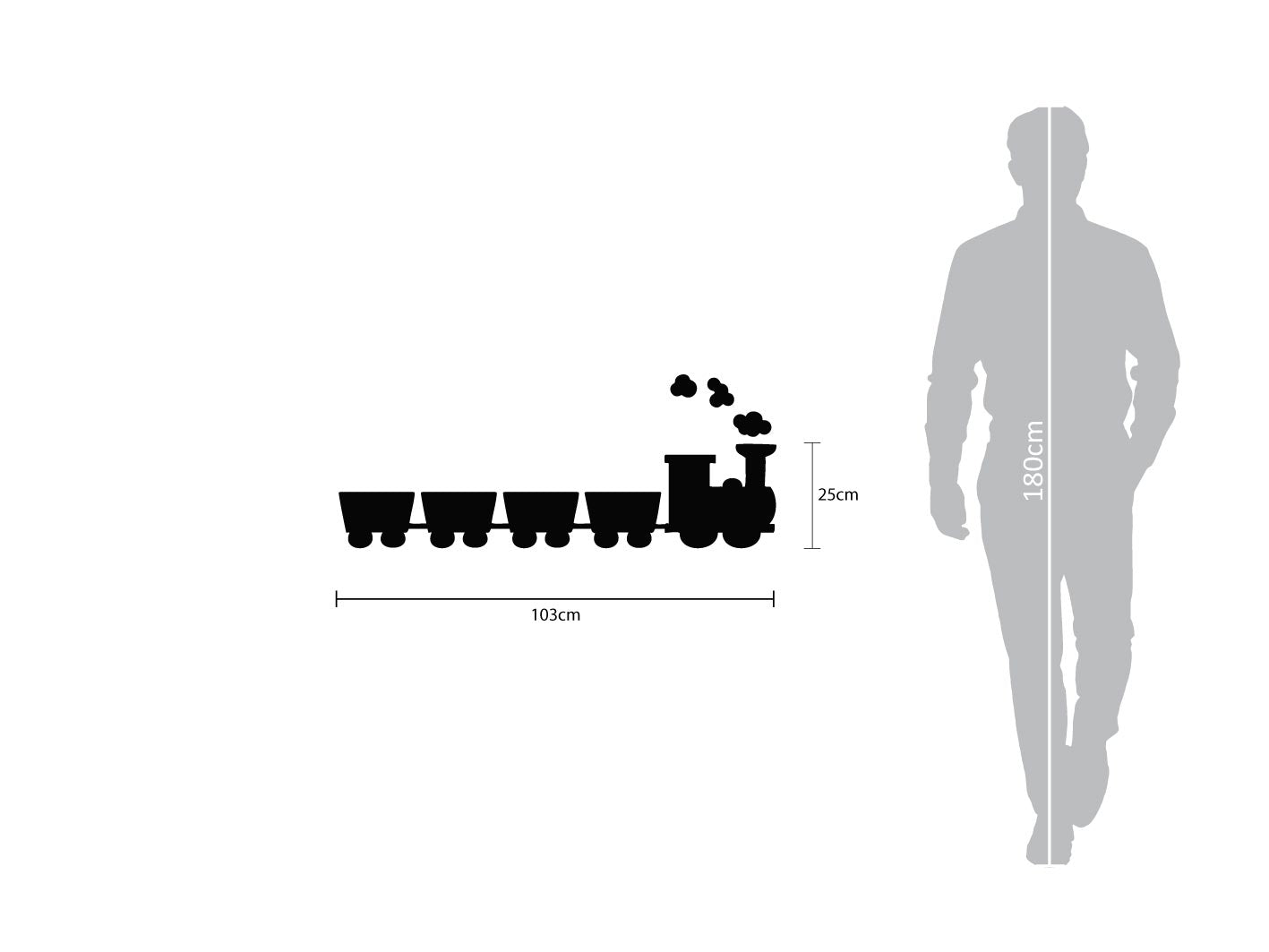 De locomotief met wagonnetjes is perfect als rustige decoratie van de baby- of kinderkamer.