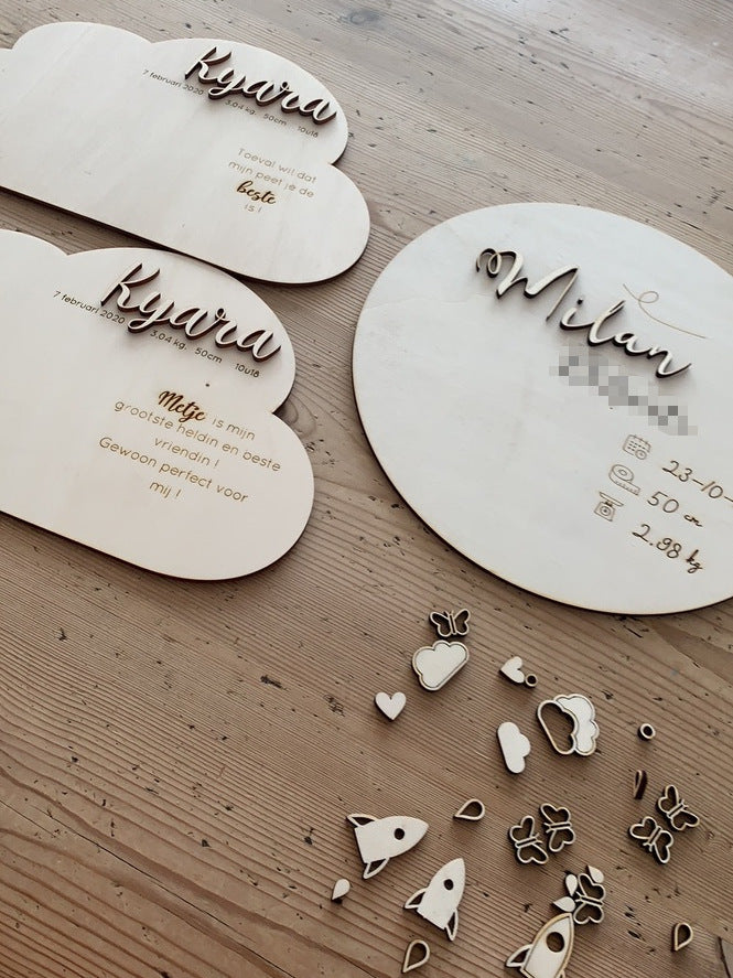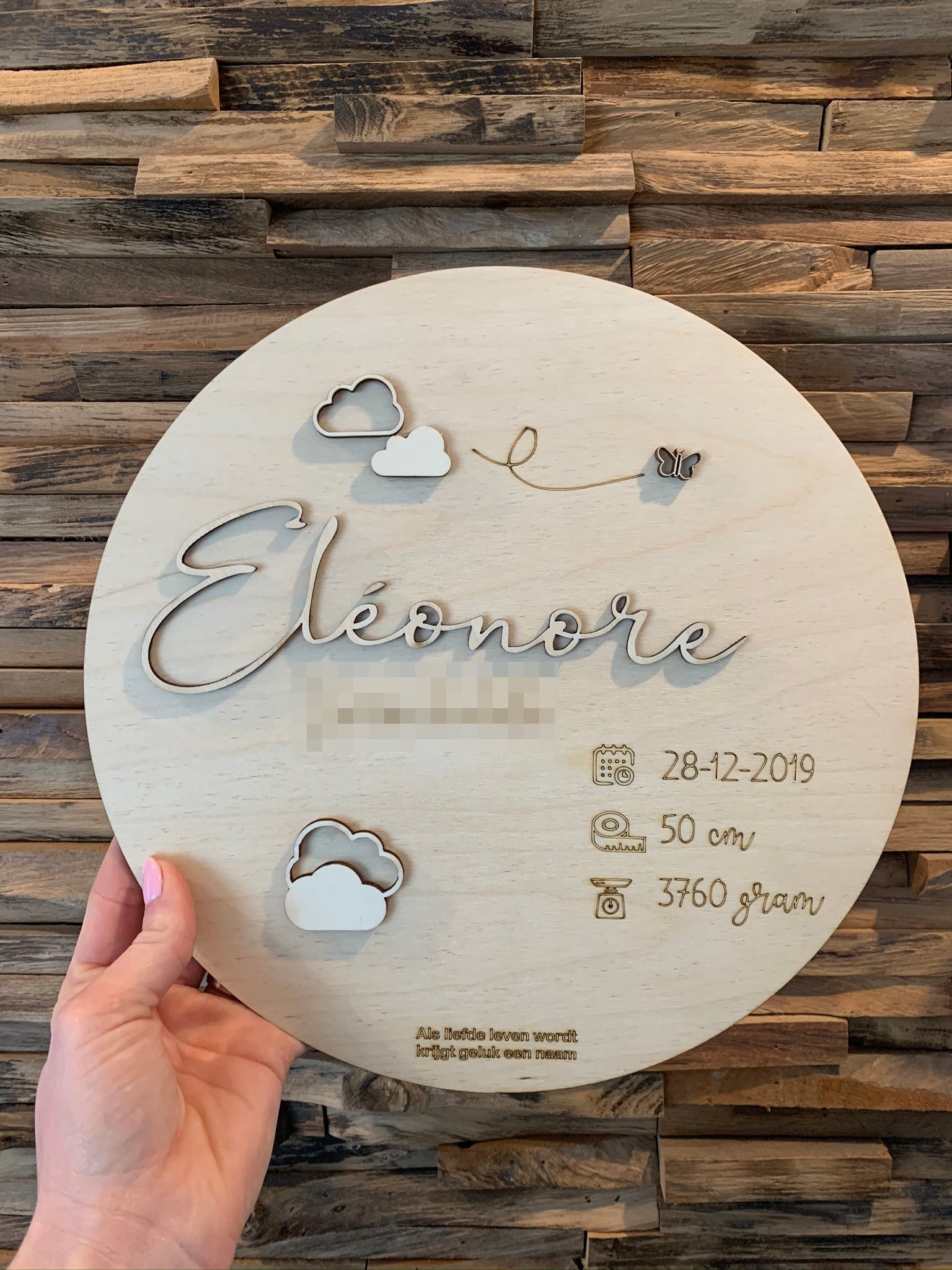 Personaliseer het bord met de naam, geboortedatum en gewicht van jouw baby, of geef het als een attent cadeau aan kersverse ouders. Een blijvende herinnering aan één van de meest belangrijke momenten in het leven.