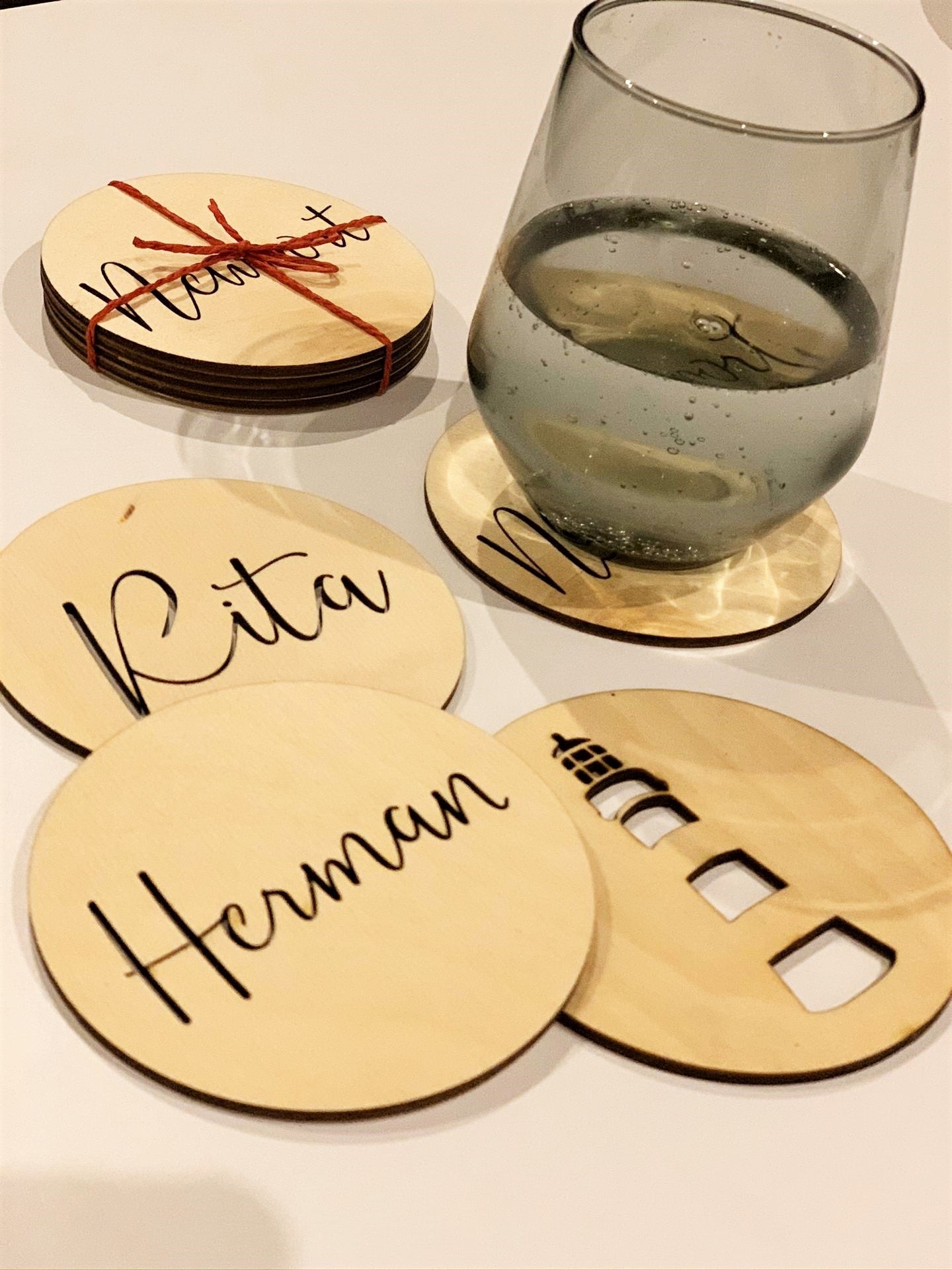 Ben je nog op zoek naar een origineel cadeau? Dan zijn deze gepersonaliseerde onderleggers ideaal! Deze mooie houten viltjes zijn ideale aanvulling als tafeldecoratie.