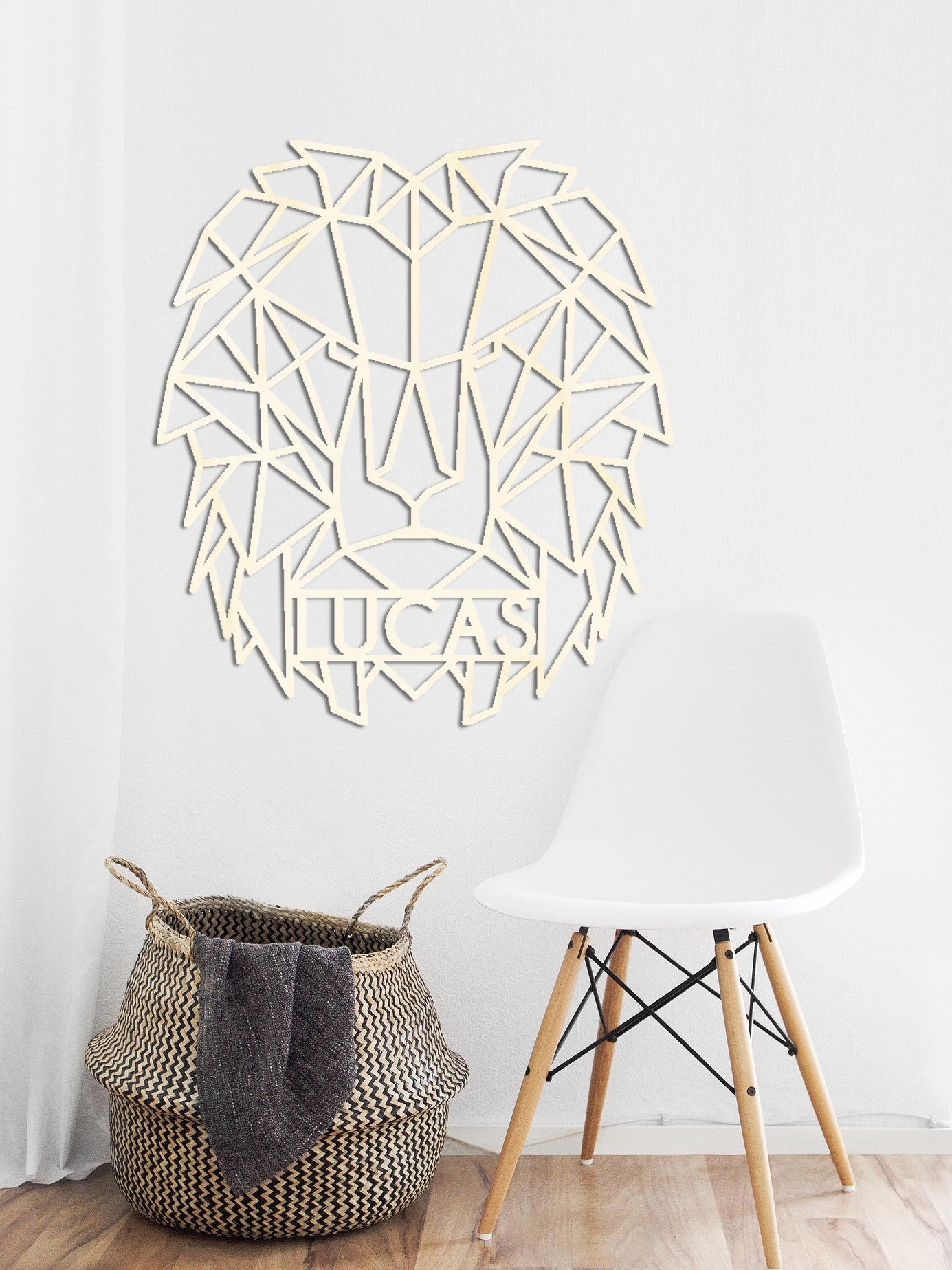 Houten wanddecoratie - Geometrische Leeuw