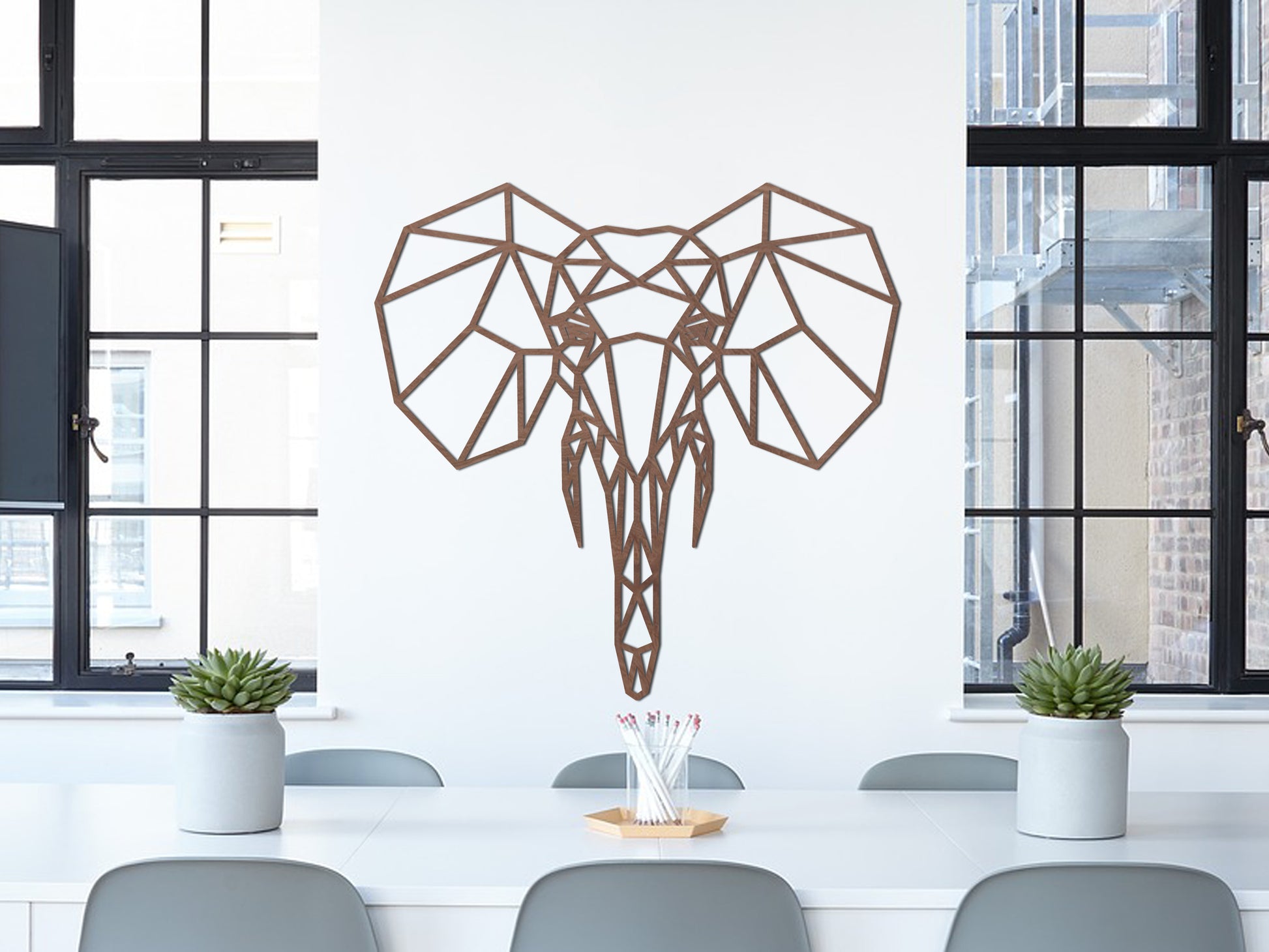 Houten wanddecoratie - Geometrische Olifant