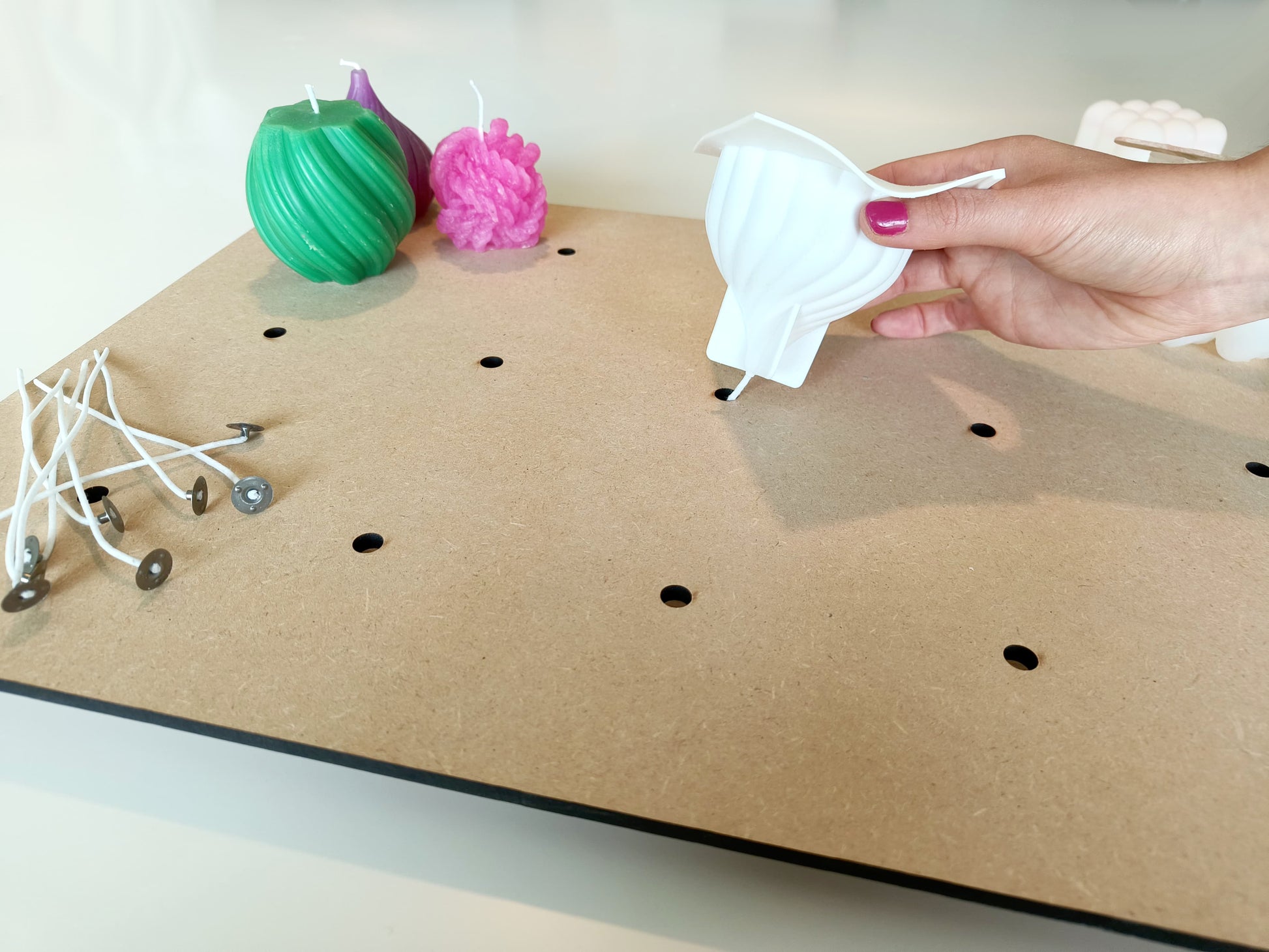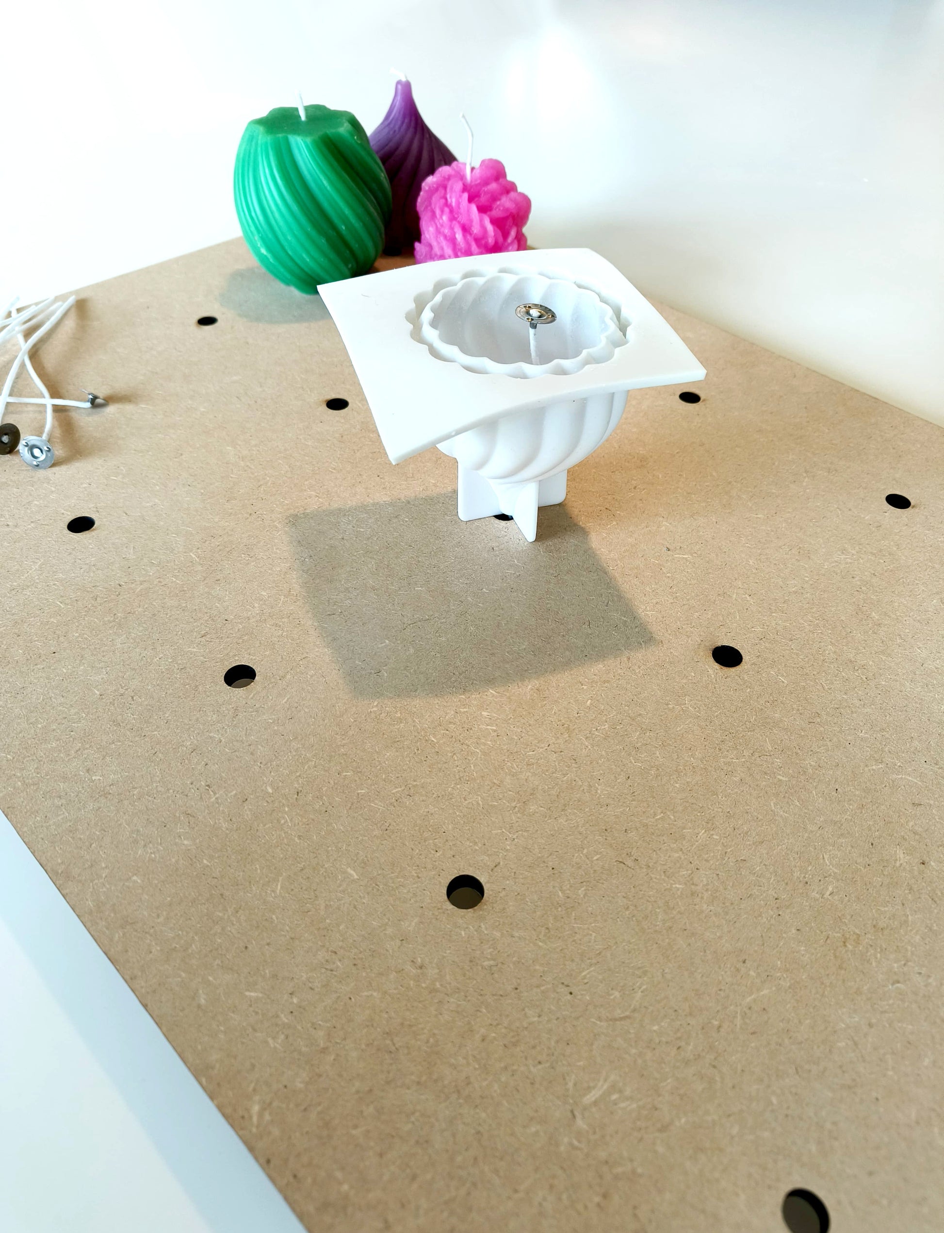 Vergemakkelijk het proces bij het maken van jouw hobby kaarsen! Deze kaarsen werktafel zorgt ervoor dat je het touwlont gemakkelijker kan verwerken in jouw kaars, zonder dat jouw kaars omvalt.