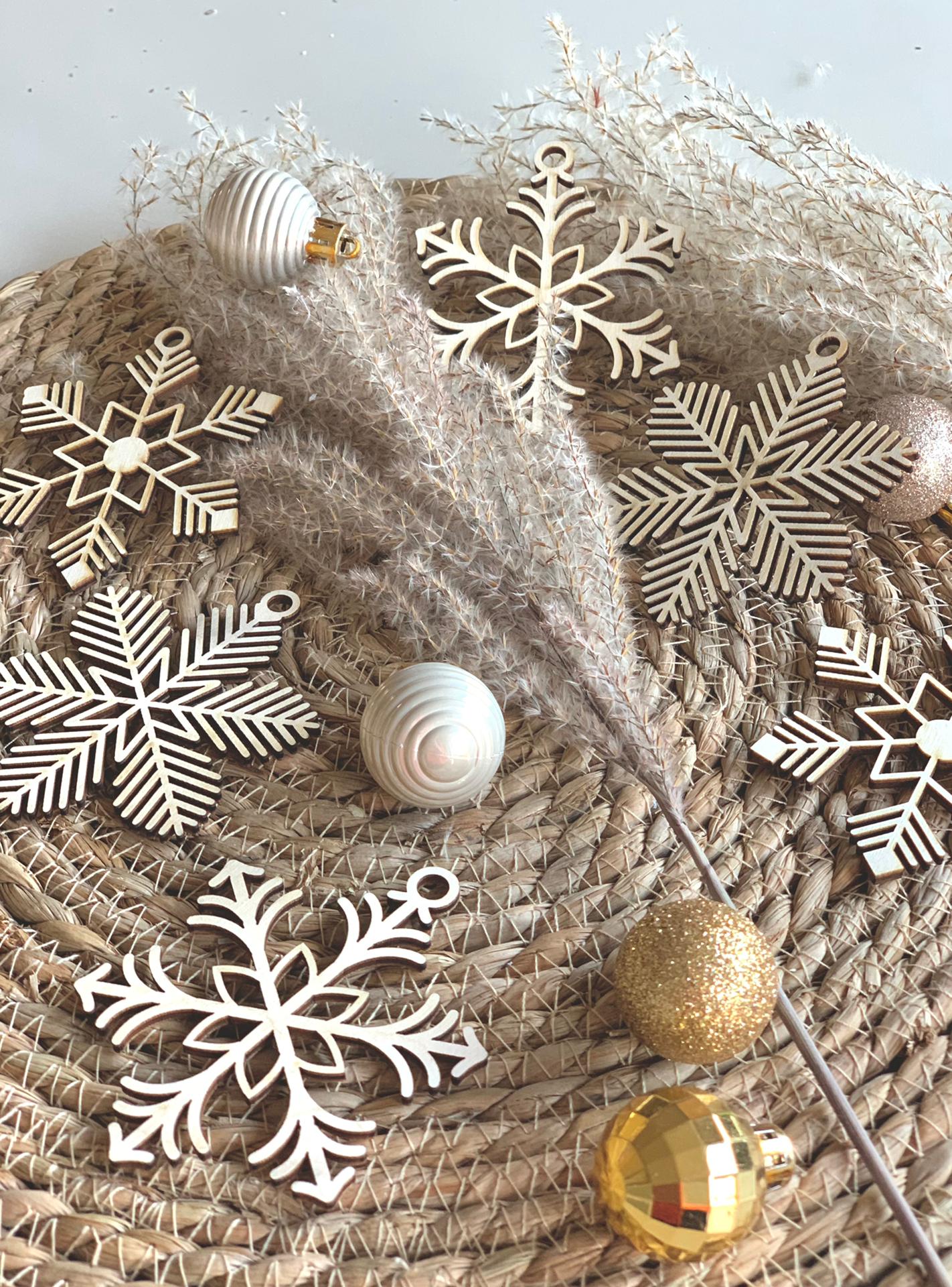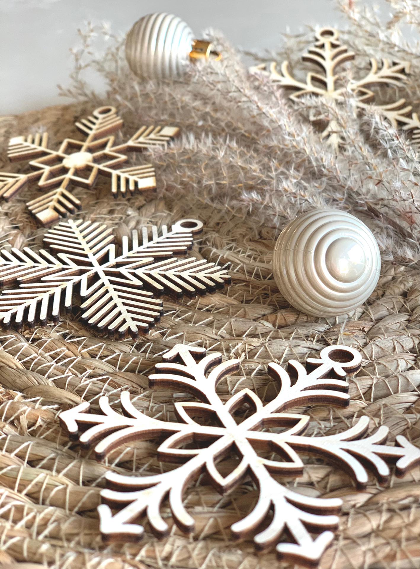 Kerstboomhangers - Houten sneeuwvlokken (6 st)