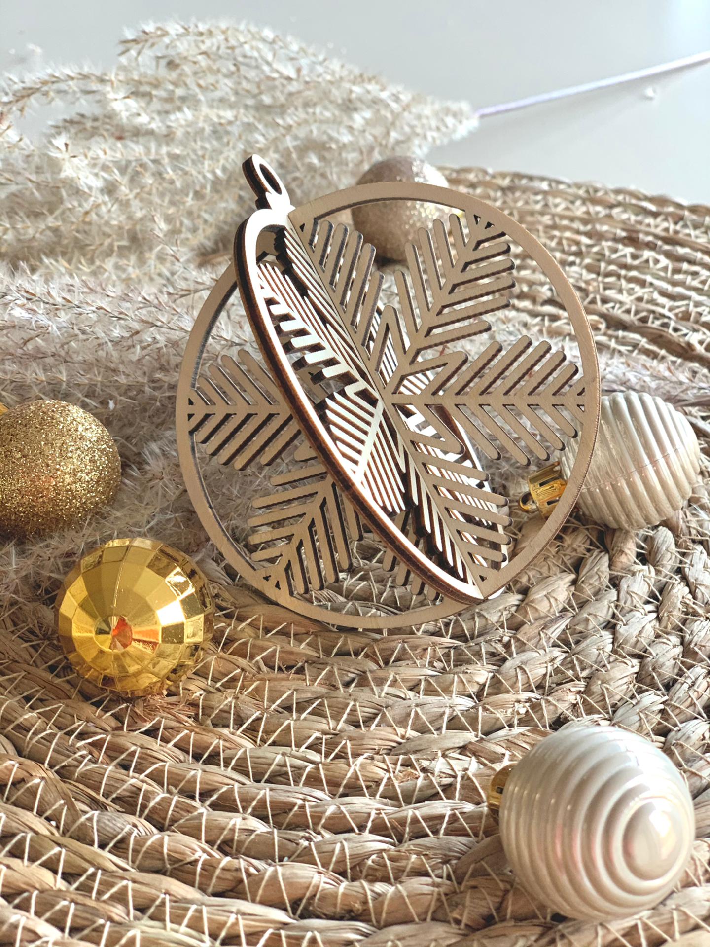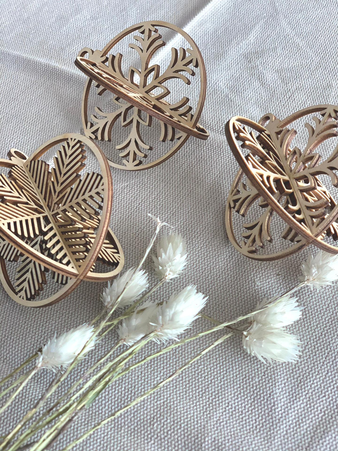 Houten kerstballen - 3D Sneeuwvlokken (3 st)
