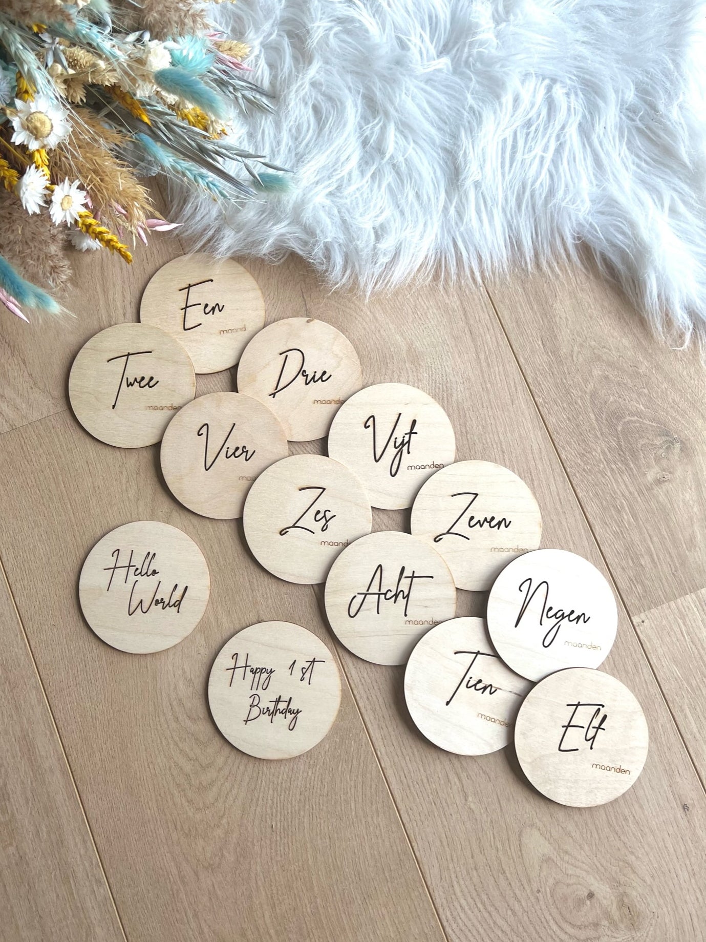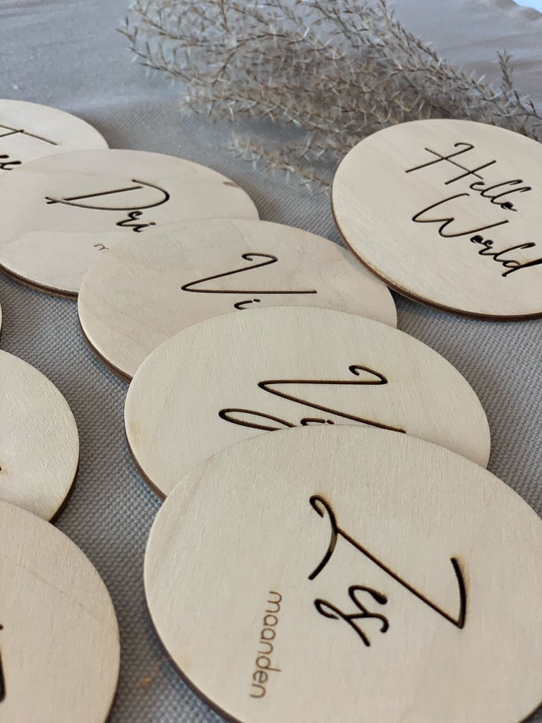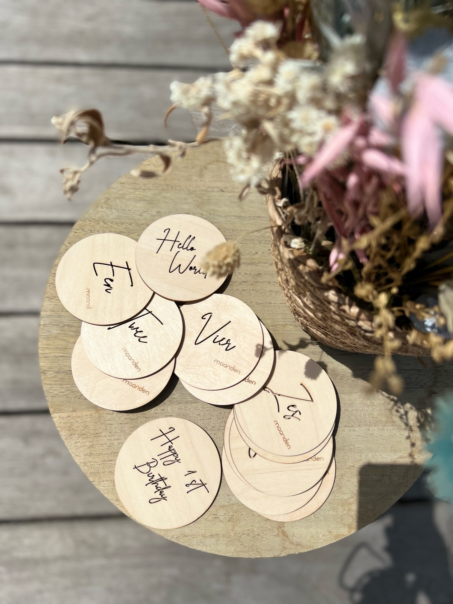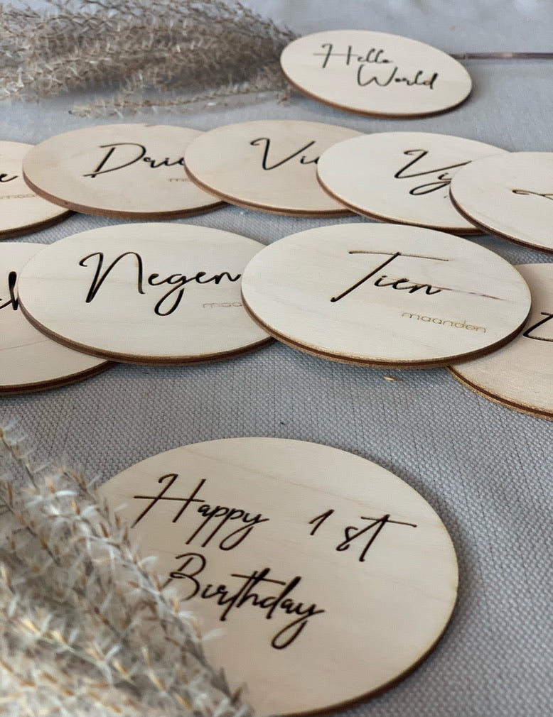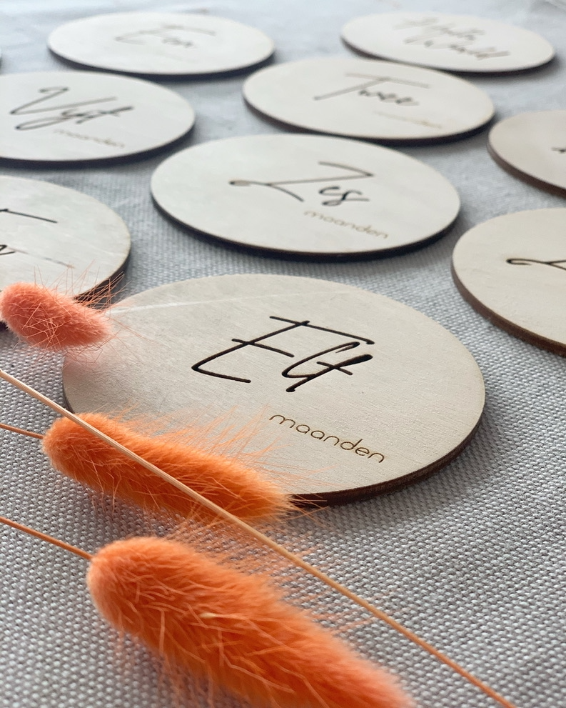 Herdenk belangrijke gebeurtenissen met mijlpaalschijven. Deze kleine schijven stellen je in staat om je huis te versieren terwijl je de belangrijke momenten in je leven herinnert. Of het nu gaat om de geboorte van een kind, een jubileum of een andere speciale gelegenheid, deze schijven betekenis toe aan elke foto. Bovendien zijn ze een prachtig geschenkidee.