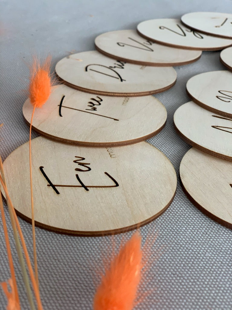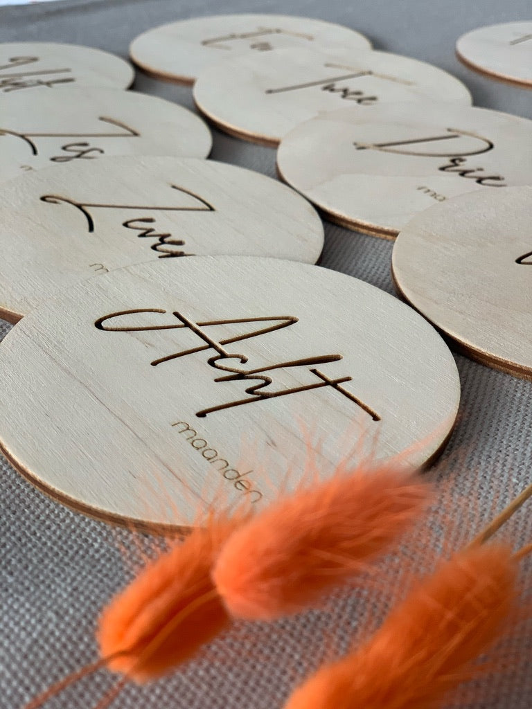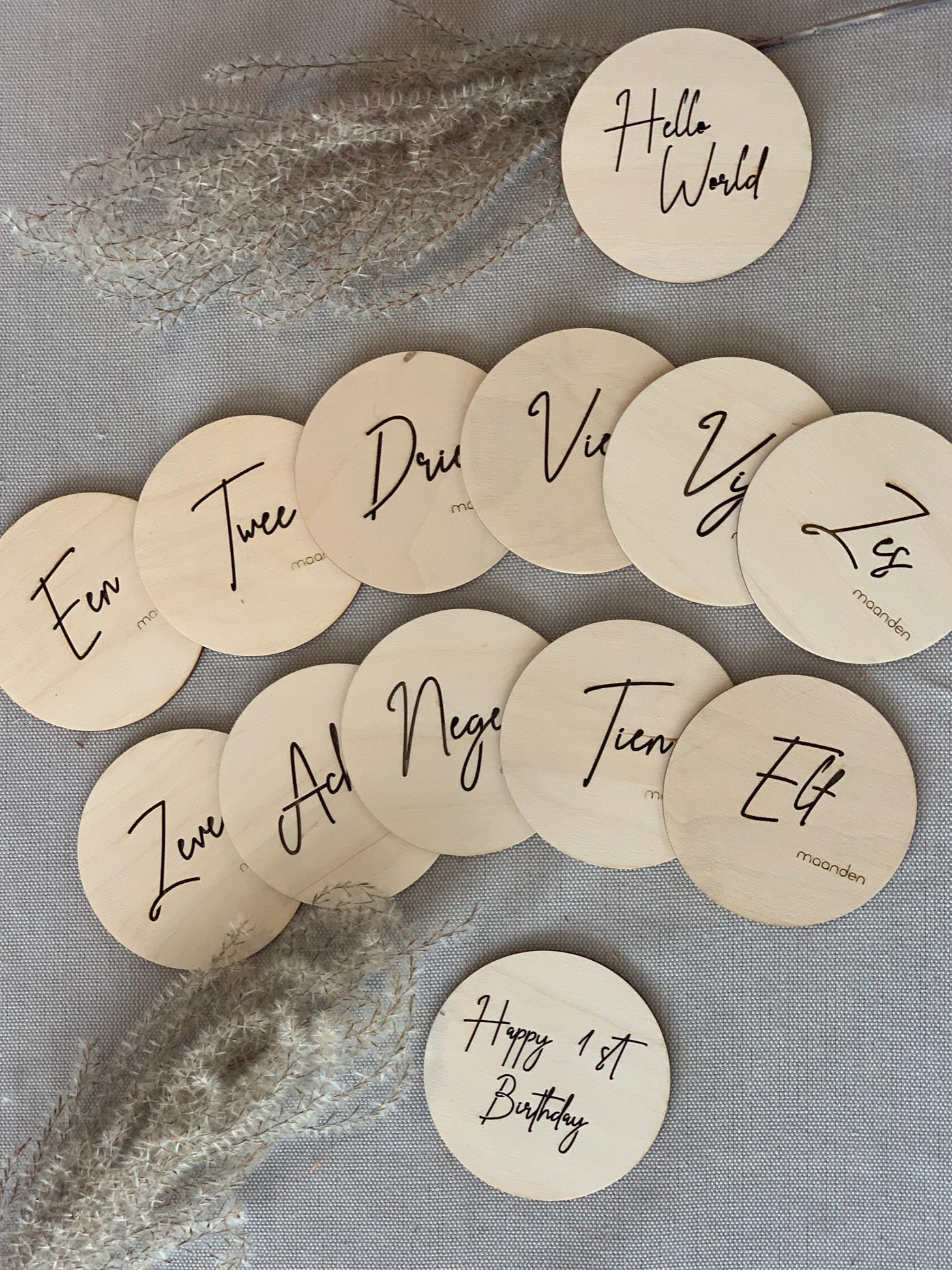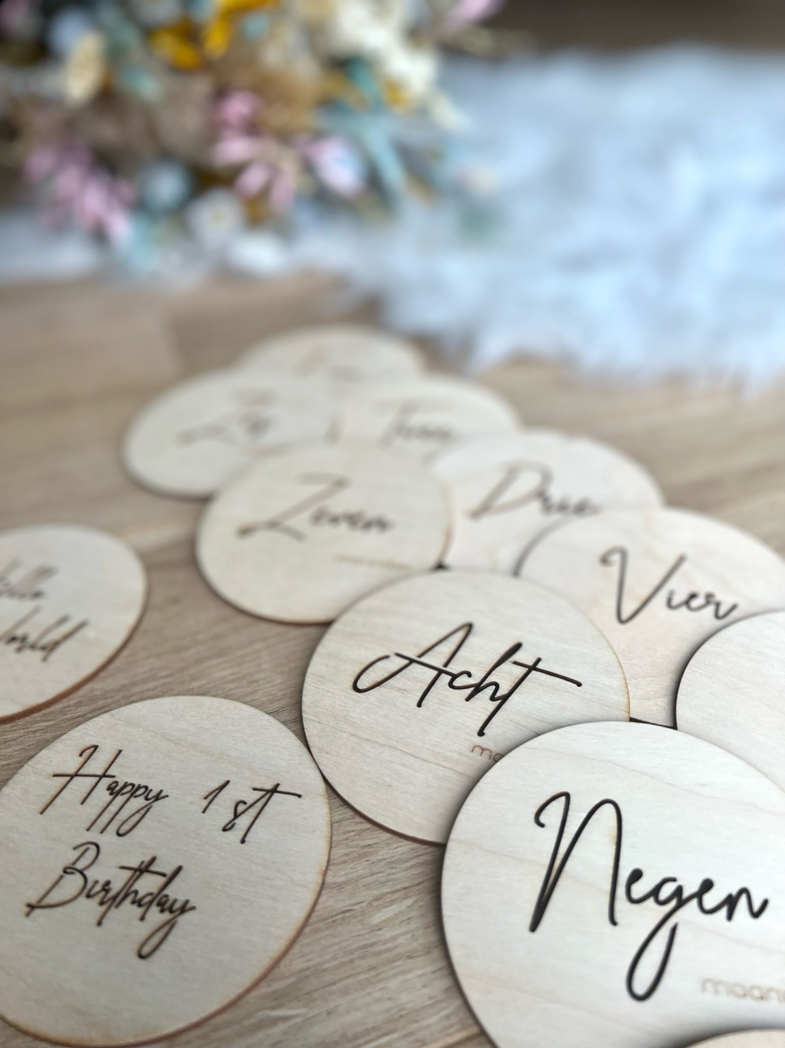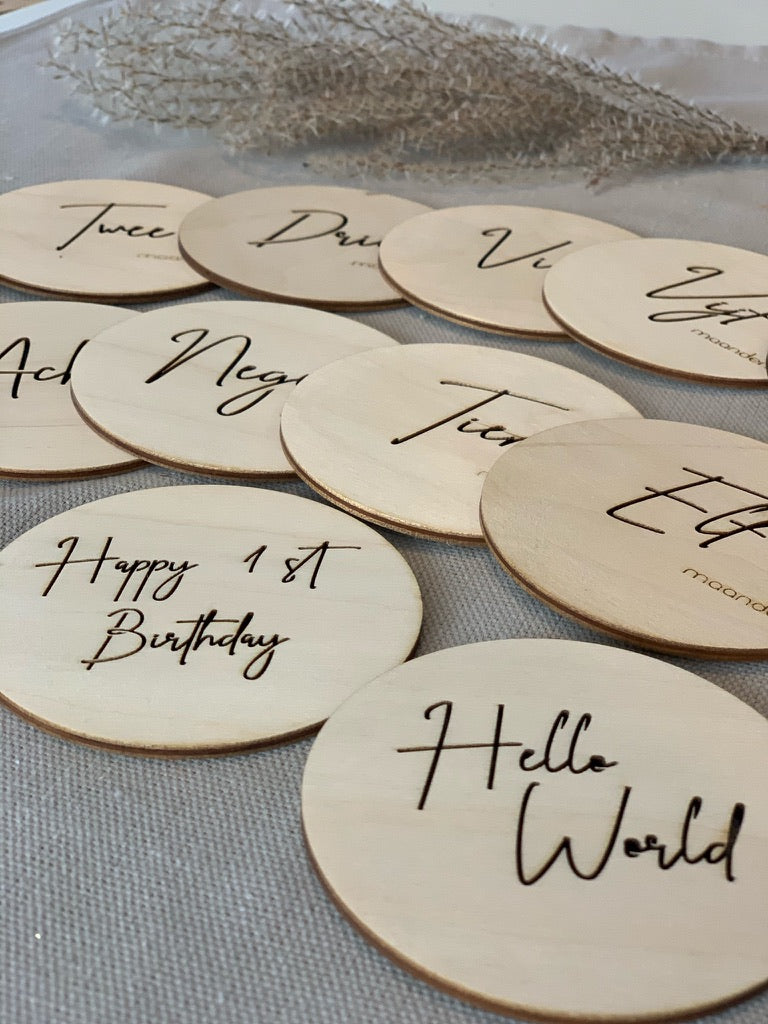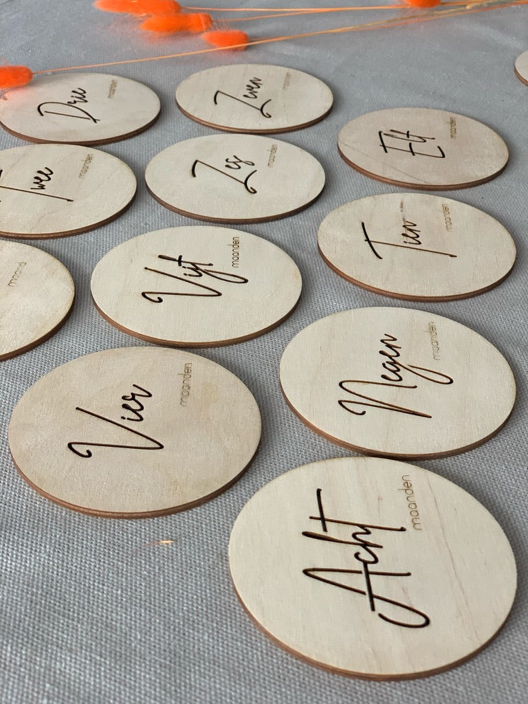 Herdenk belangrijke gebeurtenissen met mijlpaalschijven. Deze kleine schijven stellen je in staat om je huis te versieren terwijl je de belangrijke momenten in je leven herinnert. Of het nu gaat om de geboorte van een kind, een jubileum of een andere speciale gelegenheid, deze schijven betekenis toe aan elke foto. Bovendien zijn ze een prachtig geschenkidee.