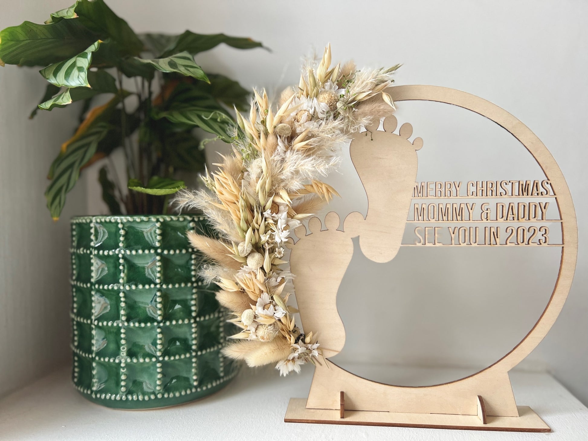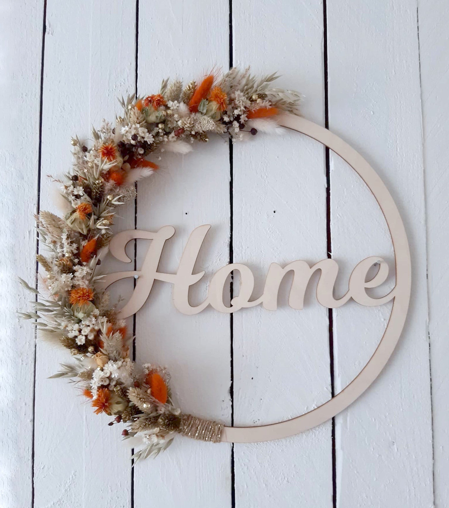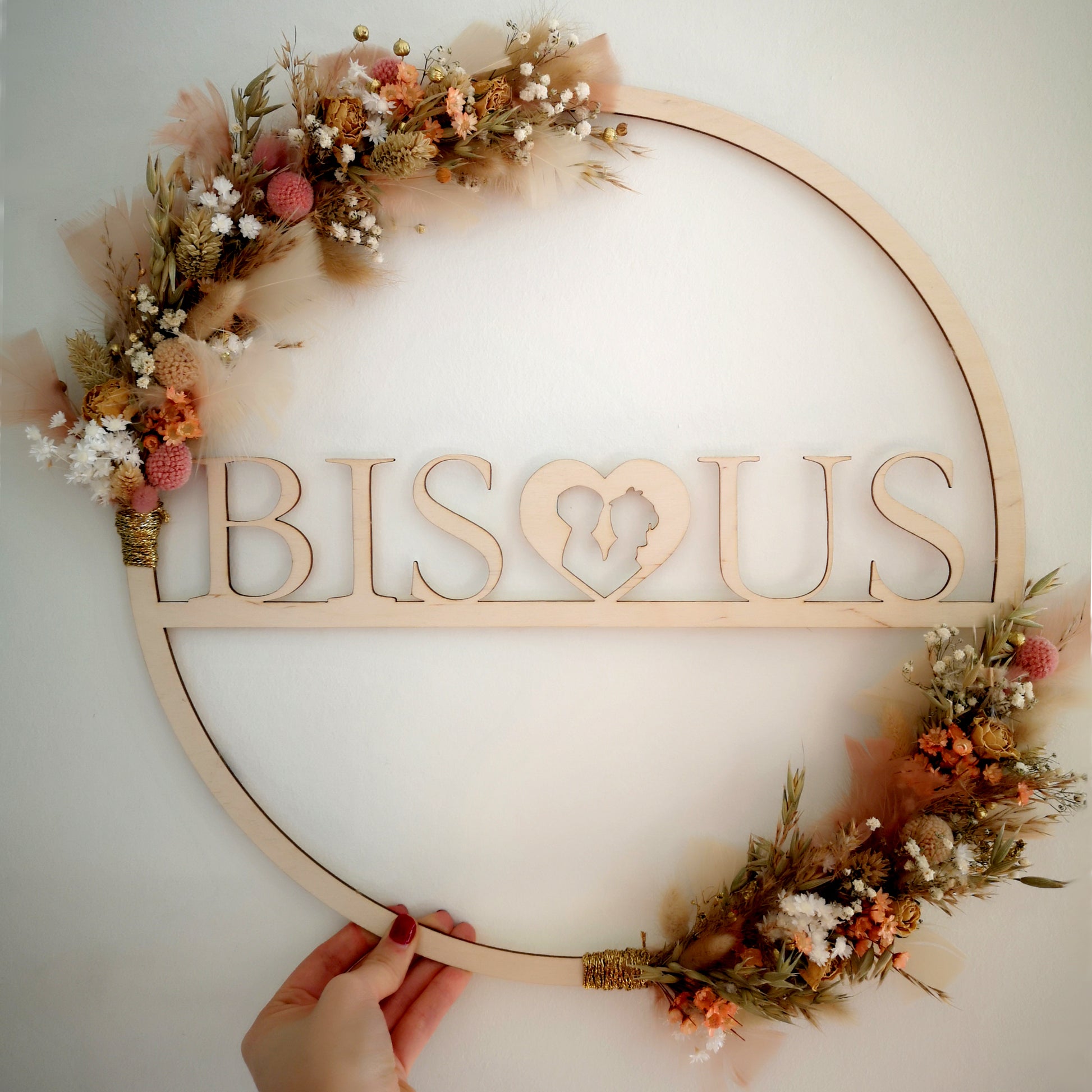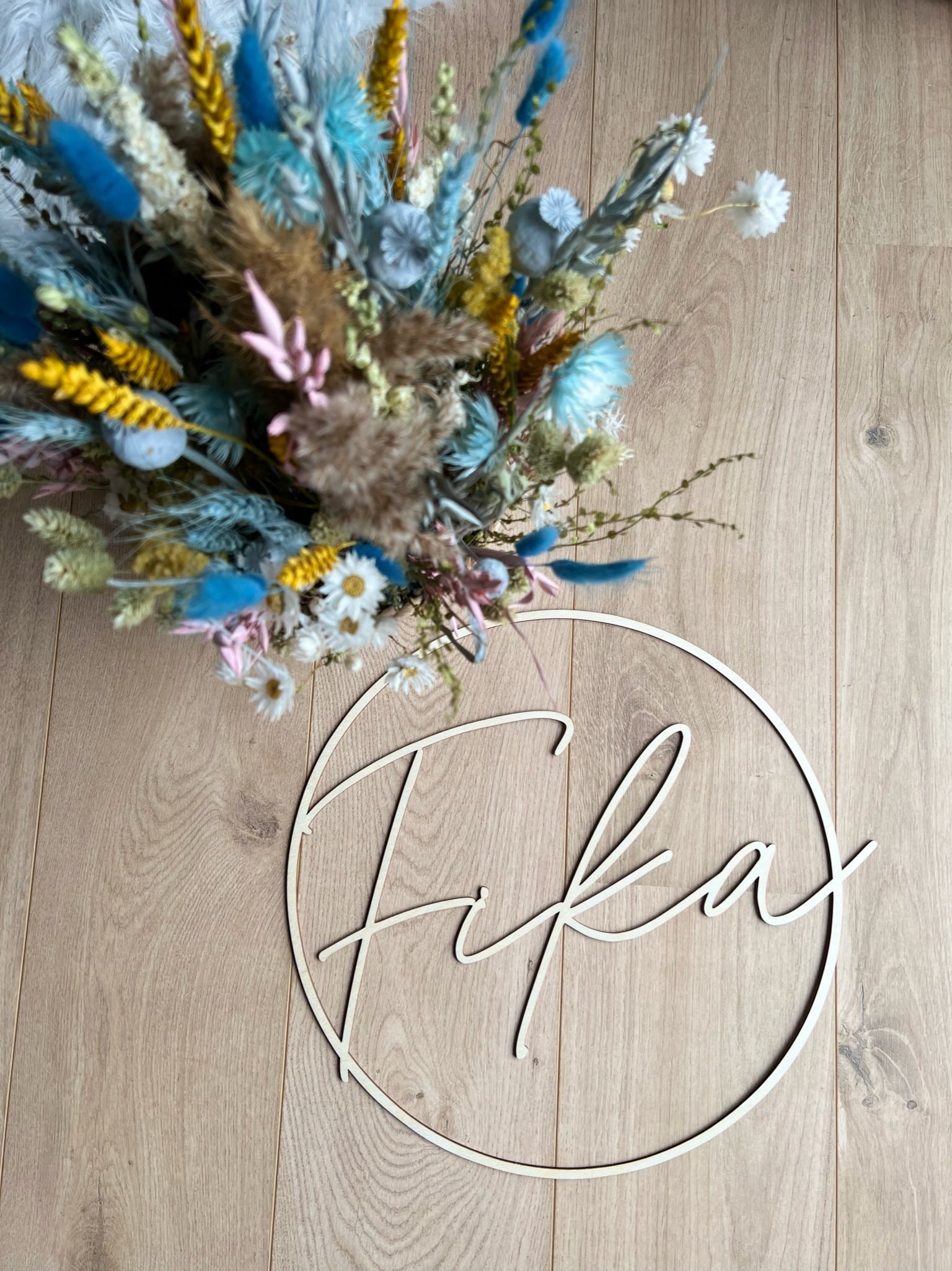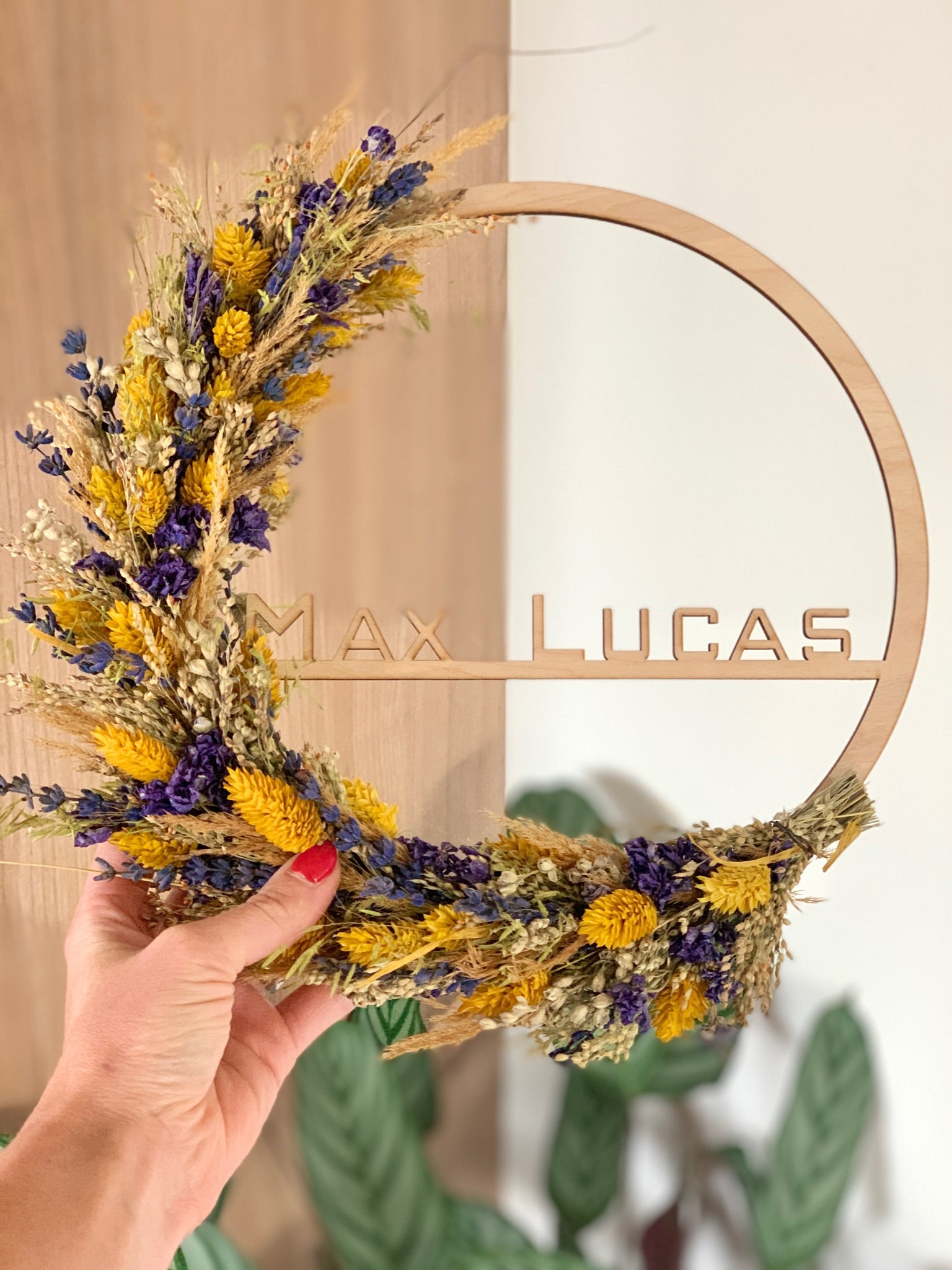 Deze hoepels en cirkels kunnen volledig worden aangepast; van de naam tot het lettertype en de afmetingen. Onze eigen bloemiste kiest voor u de mooiste droogbloemen.