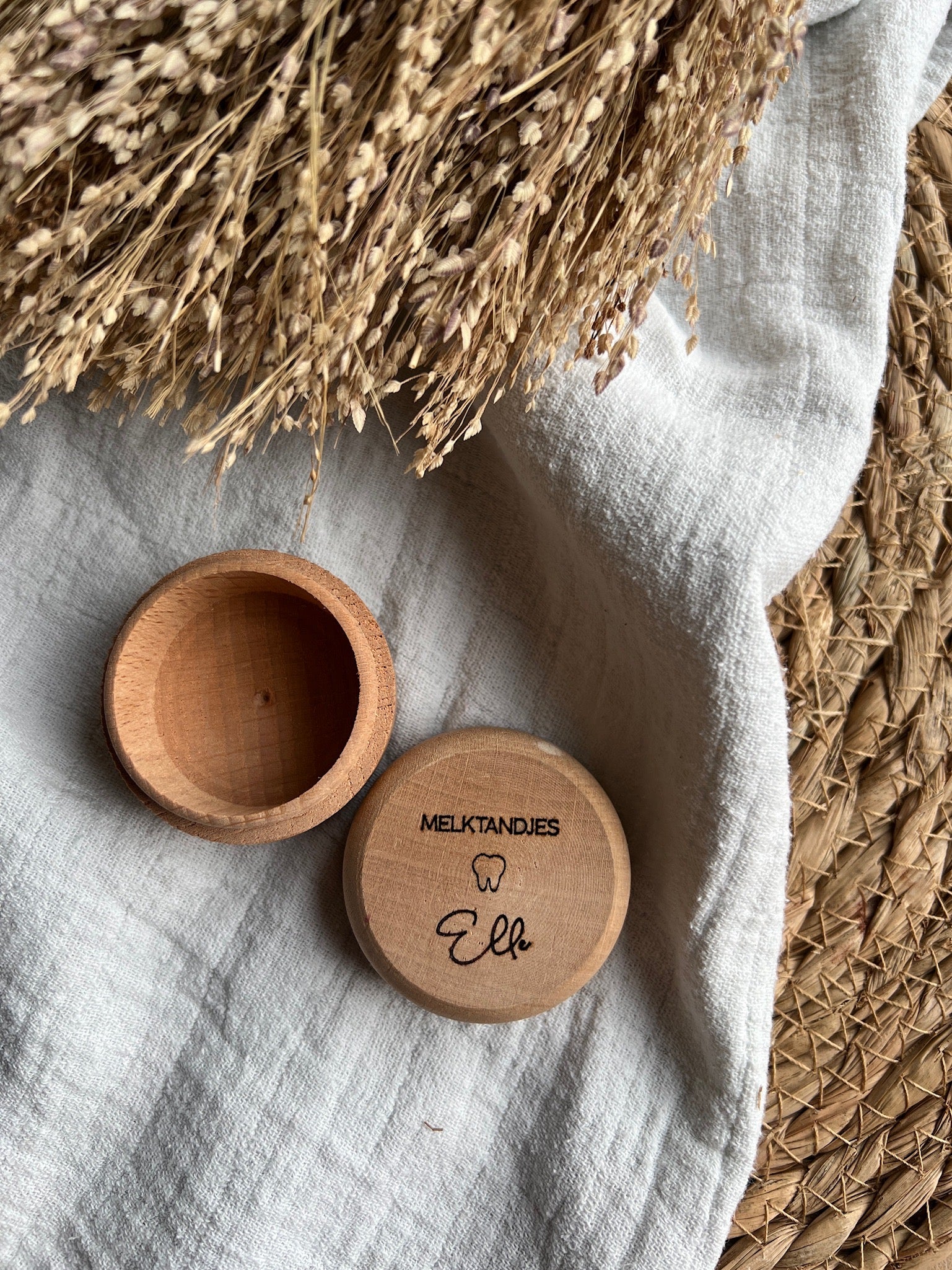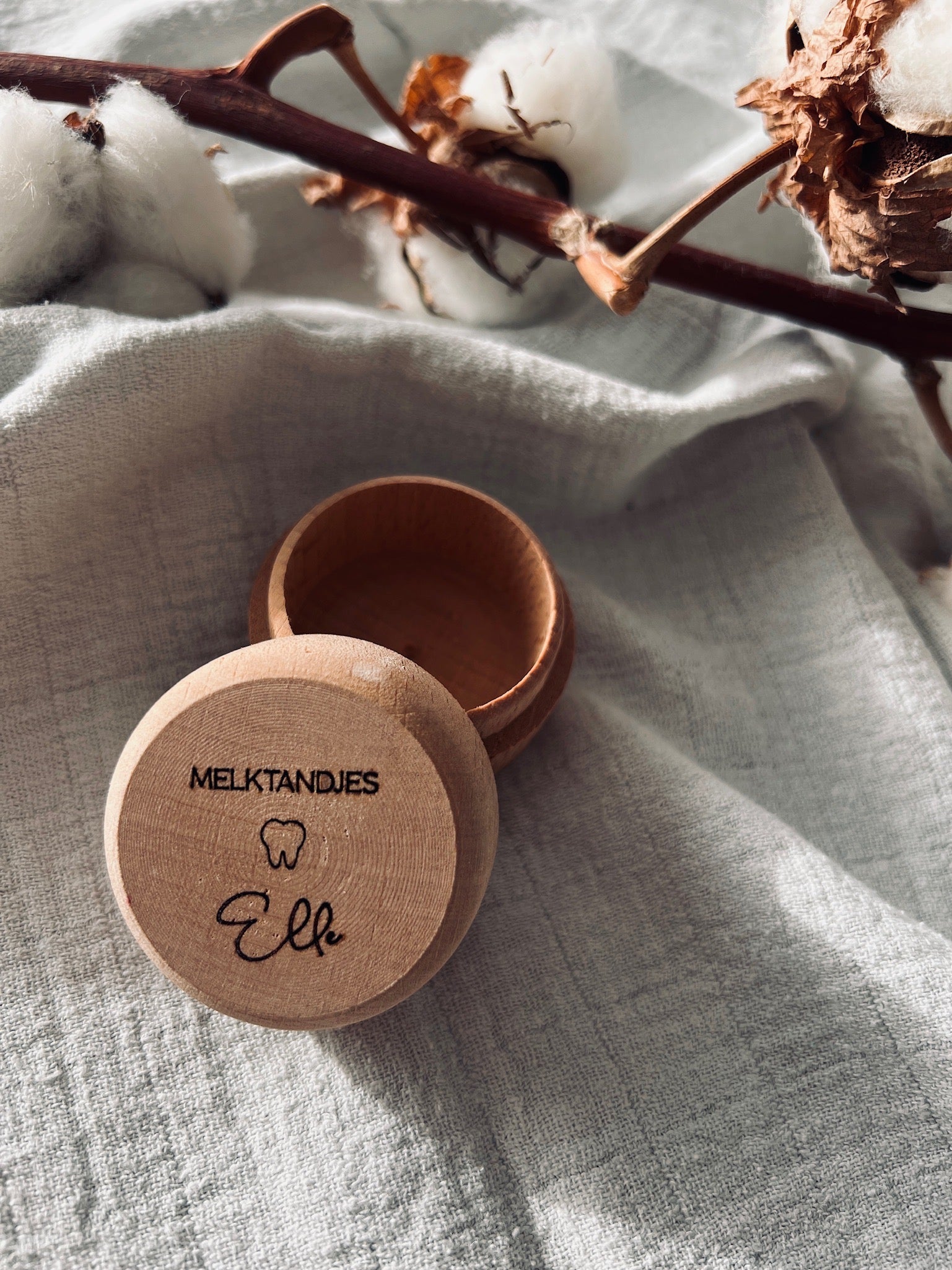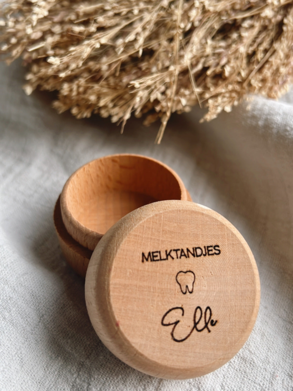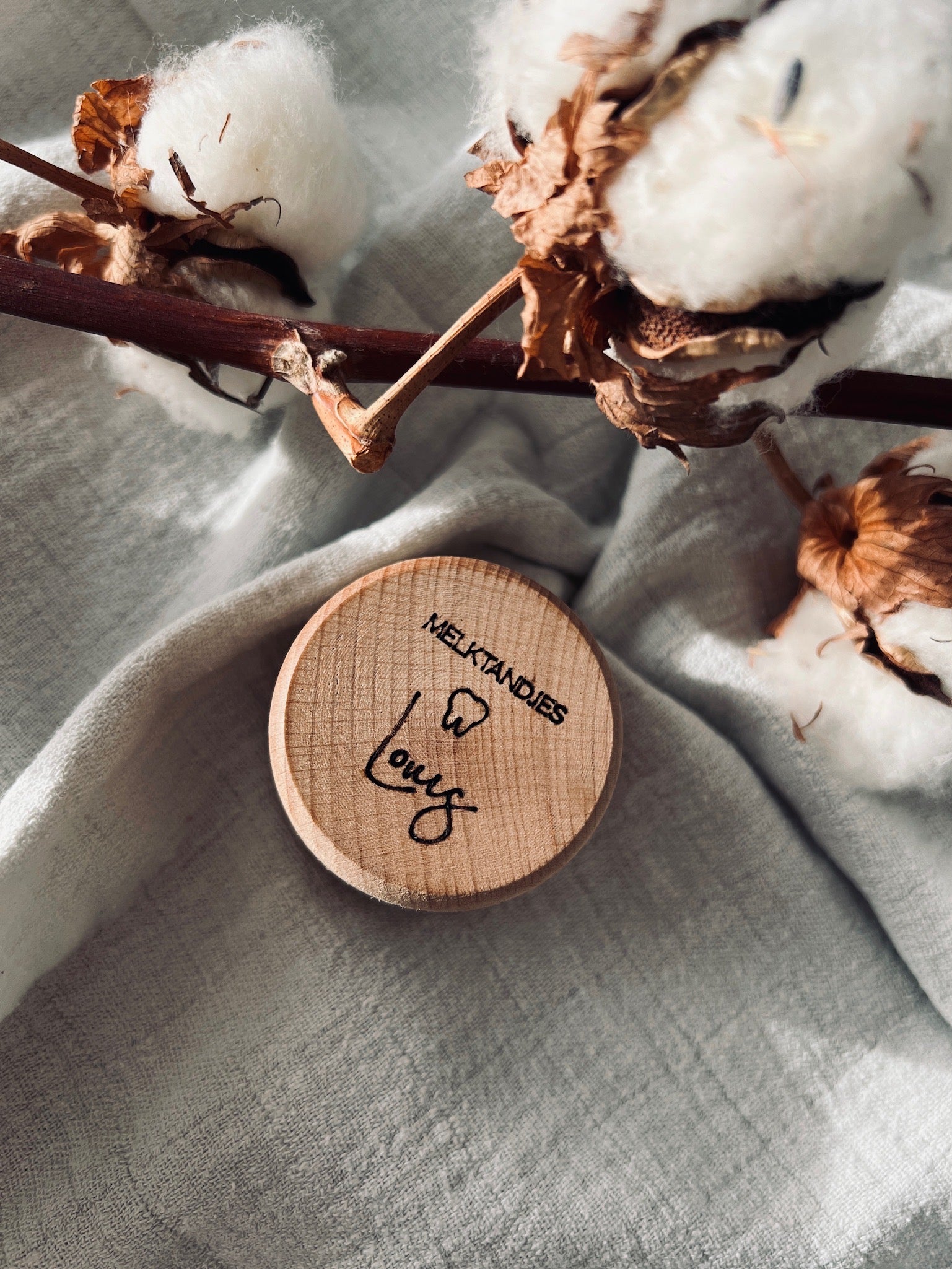 Personaliseer dit tandendoosje naar keuze, stuur ons tijdens of na de bestelling een berichtje met de gewenste gravering of alle details.